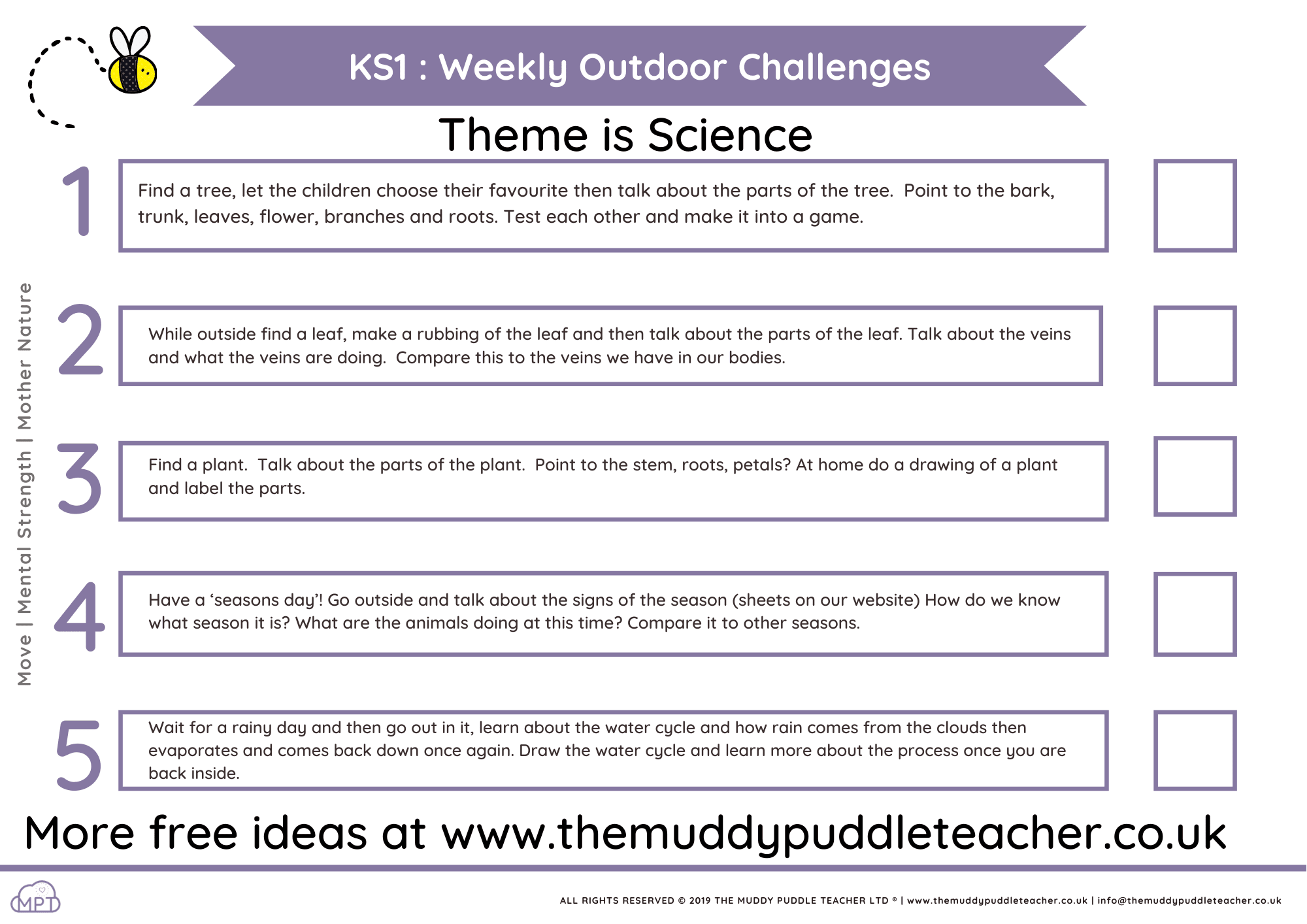 KS1 Weekly Outdoor Learning Challenges (Theme Science)